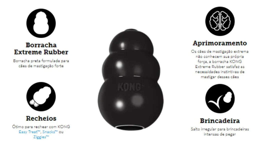 A linha KONG EXTREME foi projetado com a borracha mais resistente da linha KONG sendo recomendado para os cães mais exigentes.
